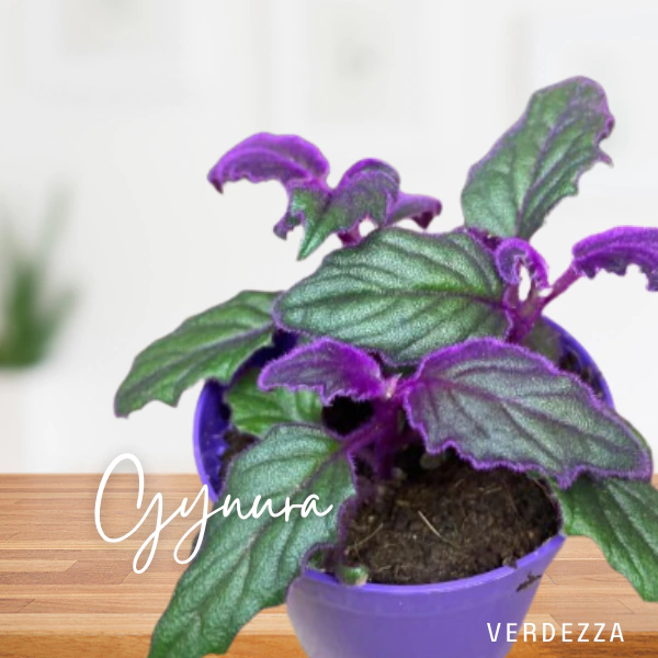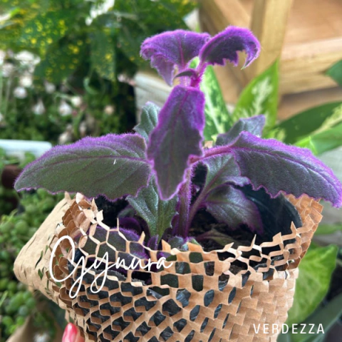 Ideal para colocar en estanterías, mesas o como parte de un jardín interior, la Gynura no solo embellece tu espacio, sino que también es una excelente opción para mejorar la calidad del aire. ¡Incorpora la Gynura en tu colección y disfruta de su singular belleza!