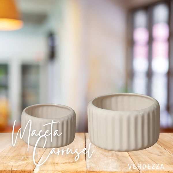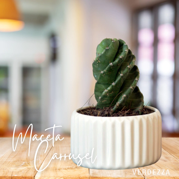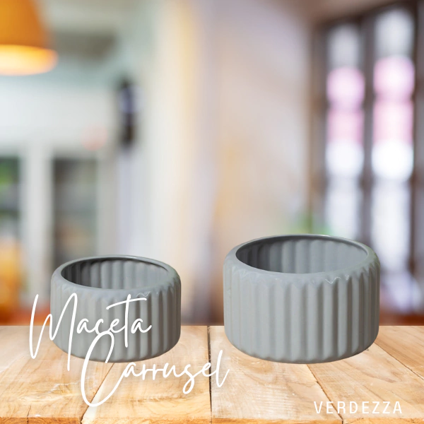 Carrusel Grande: 11 cm de altura y 20 cm de diámetro, esta maceta es perfecta para realzar cualquier espacio.