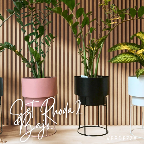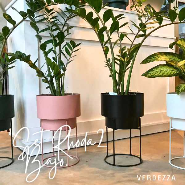 Set de Maceta con Plato y Base de Hierro Rhoda 2 bajo